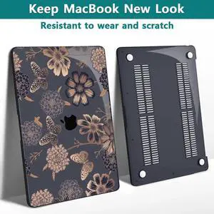 Teryeefi for MacBook Air 13 inch Case 2021 2020 2019 2018 Release (Model A2337 A2179 A1932 Retina Display with Touch ID), Plastic Hard Shell Case & Keyboard Cover for MacBook Air 13 M1, Gold Flowers