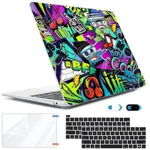 HOHAIYOO Compatible with 2022 M2 MacBook Pro 13 inch Case 2021 2020-2016 M1 A2338 A2289 A2251 A1706 A2159 A1989 with Touch Bar, Hard Case&Keyboard Cover&Screen Protector&Webcam Cover, Cool Graffiti
