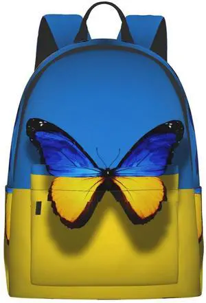 FeHuew 16 inch backpack Ukrainian Flag Butterfly Laptop Backpack Full Print School Bookbag Shoulder Bag for Travel Daypack