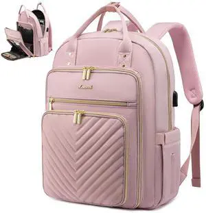 LOVEVOOK Laptop Backpack for Women, Water Resistant Travel Work Backpacks Purse Stylish Business Teacher Nurse Computer Bag with USB Charging Port,Pink