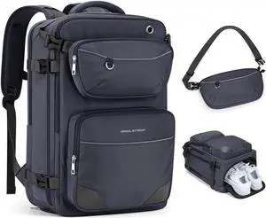 Maelstrom Travel Backpack for Men Women, 35L Carry on Backpack for Traveling on Airplane,with Belt Bag&Shoe Compartment,Waterproof Laptop Backpack fit 17Laptop-Mystery Grey