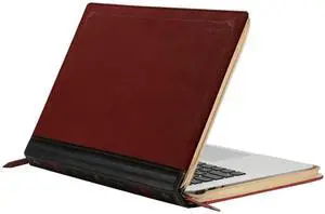 TYTX Compatible with MacBook Air 13 Inch Leather Case, for Model A2337 M1 A2179 A1932 2018-2021 Retina Display Touch ID, PU Leather Laptop Case with Pocket for Papers and Pen Holder, Wine Red