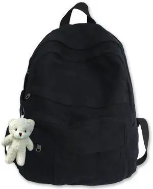PRLINJSK Cute Canvas Backpacks for Women Girls, Aesthetic Laptop Bookbag Vintage Backpack for College High School, Black