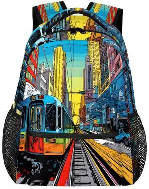 City Subway Rail Backpacks Travel Backpack for Women Men Waterproof Bookbag Laptop Backpack with Compartment Traveling Back Pack for Work, Gym