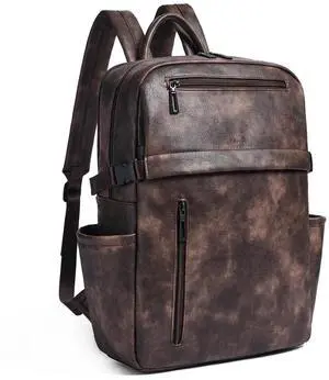Mroede Leather Laptop Backpack for Women, 15.6 Inch Laptop Travel Backpack Purse Large Capacity Computer Bag, Casual Daypack Nurse Bag College Bookbag for School, Coffee