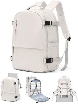 Travel Backpack for Women Men, Waterproof Carry on Backpack for Flight Approved Personal Item Bag, Business Laptop Backpack with USB Charging for Hiking Gym with Shoe Compartment Casual Daypack White
