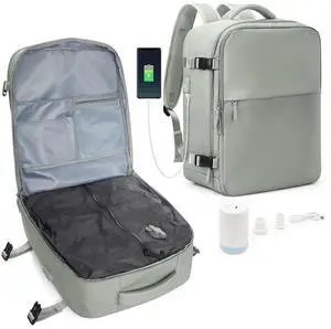 Vacuum Seal Travel Backpack with Pump Air Vacpack Carry On Backpack for Travel With Vacuum System Approved Personal Item Compression Back Pack Space Saver Bags Storage Laptop Backpacks Grey Green