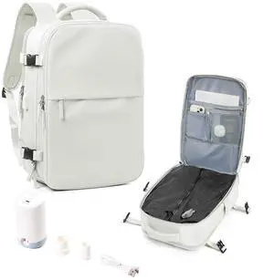 Large Vacuum Seal Compression Travel Backpack for Women Men Air Vacpack Travel Vacuum Bags with Pump Laptop Backpack with Shoe Compartment Carry On Suitcase Luggage Flight Approved White