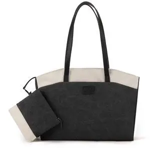 Wxnow Women's Laptop 15.6 Inch | 12-Pocket Canvas Tote for Work/Travel, Fits Laptop+Keyboard+Accessories (Lightweight 1.5lbs with Striped Lining) (D-Black)