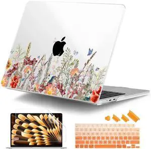 Yebiseven for MacBook Air 13.6" M4 Case 2025 2024 2022 Released A3240/A3113 M3/A2681 M2, Laptop Case with Keyboard Cover & Screen Protector & OTG Adapter & 2 Webcam Covers, Blooming FlowerCompatible W