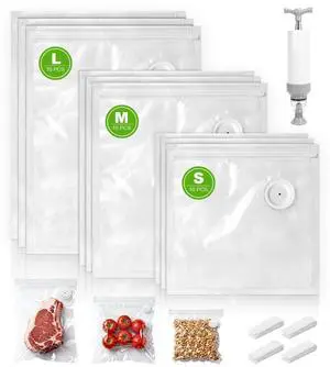 Food Vacuum Sealer Bags  15 Pack Reusable Bags with Leakproof Zip Seal & Air Valve  Microwave, Freezer & Reusable Sous Vide (Small)