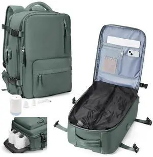 VGCUB Large Travel Backpack Bag for Women Men,Carry on Backpack,17 Inch Laptop Business Work Waterproof Backpack with Laptop Compartment,Person Item Flight Approved,Mochila de Viaje,Green Expandable