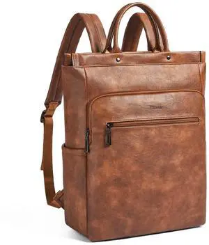 Leather Laptop Backpack for Women, Travel Backpack Purse Fits 15.6 Inch Laptop, Casual Daypack with Laptop Compartment for Teachers College Work Business Nurse Weekender, Brown