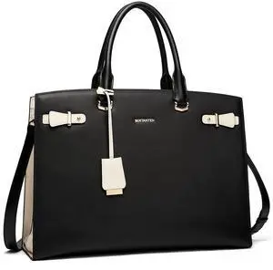 BOSTANTEN Briefcase for Women Leather Laptop Briefcase Shoulder Work Tote Bag Purse 15.6 Inch Black