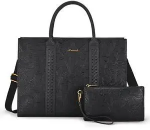 LOVEVOOK Laptop Tote Bag for Women, Vintage Leather Work Bags 17 inch Laptop Bag, Waterproof Professional Computer Bag Business Office Briefcase Large Shoulder Bag Handbag, Black