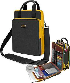ZINZ 12.3-13 Inch Travel Laptop Shoulder Bag with Expandable Compartment and Valuables Compartment -Black-Yellow edge