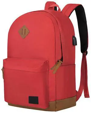 Goloni Classic Backpack with USB Charging Port,Water Resistant Anti-Theft Travel Backpack for Men & Women,Laptop Backpack,Fits 17.3 Inch Laptop,Red