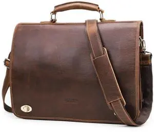 Masa Kawa Vintage Leather Briefcase for Men 17 Inch Laptop Computer Brief Case Business Travel Work Messenger Cross Body Shoulder Bags, Brown