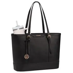 LOVEVOOK Work Tote Bag for Women 15.6 Inch Laptop Computer Bags with Cup Holder, Large Leather Teacher Bag Briefcase for Office Travel Black, PU