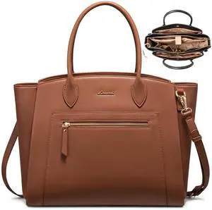 LOVEVOOK Laptop Tote Bag for Women, 15.6 Inch Large Capacity Work Bags Briefcase Purse with Multiple Pockets & Large Bottle Holder, Vegan Leather Business Office Computer Bag for Teacher, Brown