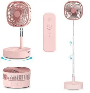 Portable Oscillating Pedestal FanRemote, 120° Rotation, 3-In-1 Foldaway/Standing/Desk Fan, Anti-Slip 7200Mah Rechargeable, Telescopic 4 Speed Quiet Timer Fan Home Outdoor Travel (Pink)