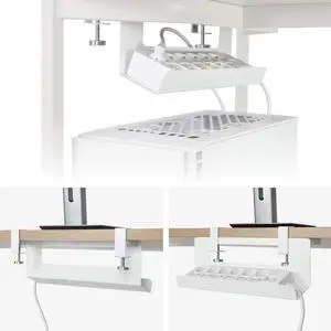 Collabospace Under Desk Cable Management Tray, Cord Hider, Cord Organizer, Cable Organizer, Cable Hider, Cord Management, No Drilling Required - White Cable Manager for Desk