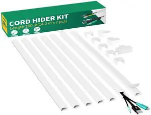 Cord Hider, 113.6in Cable Hider, Cord Covers for Wires on Wall, Wire Covers for Cords on Wall, Cable Management Wire Hiders for TV, 8 x L14.2 x W0.94x H0.55in - White