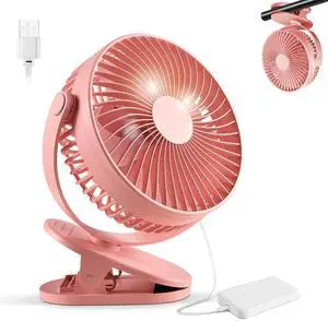 Clip on Fan Rechargeable, 8-Inch Battery Operated Desk Fan, USB Fan, 5Speeds, Strong Airflow, Sturdy Clamp for Golf Cart Office Desk Outdoor Travel Camping Tent Gym Treadmill,Pink