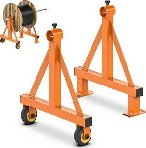 Portable Wire Spool Rack Cable Caddy - Steel Dispenser Holder With Wheels for up to 28" Diameter Spools, 220 Lbs Capacity (Orange)