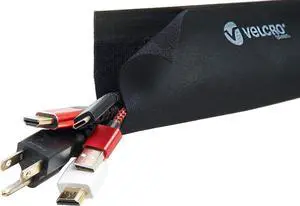 VELCRO Brand VEL-30797-USA Mountable Cable Sleeve | Cord Management Mounts on Walls, Desk or Entertainment Center | Removable Adhesive is Damage Free | 12in Black, 2pk, 12in-2Pk