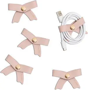 SenseAGE 5 Pack Cord Organizer, Bow Cord Keeper, Cable Organizer USB Holder, Leather Cable Management, Cable Straps, Earphone Winder, Storage Straps for Electronics, Earbuds (Dusty Rose, Big)