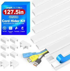Cord Hider Kit, 110in Cord Covers for Wires on Wall, Paintable Wire Covers for Cords on Wall, Self-Adhesive Cable Hider Cord Organizer, Wire Hiders, 8X L14in X W0.96in x H0.57in