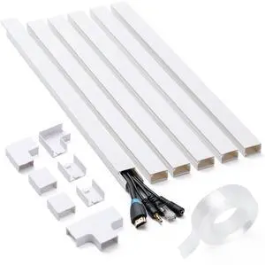 94.5in Cord Hider Kit, Cord Covers for Wires on Wall, Cable Hider Cord Organizer, Wire Hiders for TV on Wall, Cord Concealer, Cable Cover Wall Wire Management, 6X L15.7 W0.96 H0.58in, White