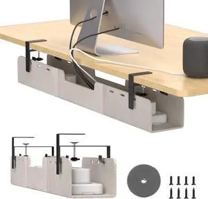Univivi No Drill Under Desk Cable Management Tray, 36" Cord Organizer for Table, Clamp/Screw Mount Desk Cable Management, Premium Fabric Cable Management Tray for Office, Home