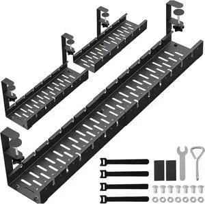 YECAYE Under Desk Cable Management Tray, All-Metal Clamp-Mount Cable Management Organizer Tray, Computer Cord Organizer Rack, Standing Desk Wire Organization for Office and Home, Black
