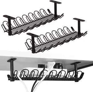 No-Drill Under Desk Cable Management Tray - 2-Pack Wire & Cord Organizer - Standing Desk Cable Management - Power Strip Holder - M