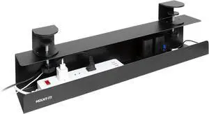 Mount-It! Under Desk Cable Management Tray Clamp-On No-Drill Metal Cable Management Tray for Desk & Standing Desk, Wire & Cord Organizer for Power Strips, Glass Desks 23.6 Black