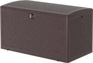 120 Gallon Waterproof Large Resin Deck Box Indoor Outdoor, Lockable Storage Container for Patio Furniture Cushions, Throw Pillows, Garden Tools, and Pool Floats, Brown
