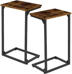 AMHANCIBLE C Shaped End Tables Set of 2, Couch Side Tables that Slide Under, TV Trays for Living Room, Bedroom, Small Space, Sofa, Rustic Brown, HET02BBR