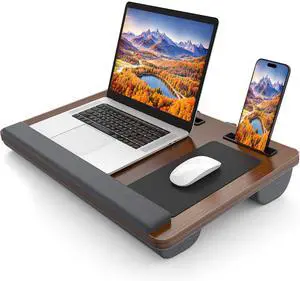 Lap Desk - Up to 17 Laptop Tray with Wrist Rest, Portable Handle, Fixed Mouse Pad, Tablet & Phone Slots, Laptop Lap Desk with Cushion (Dark Brown)
