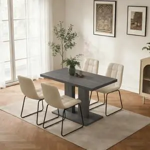 Dining Table Set for 4-6 People, 46 Inch Modern MDF Oak Kitchen Table with 4 Faux Leather Chairs, Rectangular Dining Room Table Set for Home, Small Spaces, Dark Gray Table + 4 Beige Chairs
