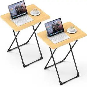 TV Tray - Foldable TV Trays Set of 2 with Corner Stabilizers, Waterproof & Scratch-Resistant TV Dinner Tray Table for Living Room, Bedroom, Office, Picnic, 16.9"×13.0"×24.2", Natural