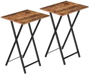 Folding TV Tray Tables, Set of 2 Side Table for Small Space, Industrial Snack Tables for Eating at Couch, Stable Metal Frame, Easy Assembly, Space Saving, Rustic Brown and Black BF25BZ01