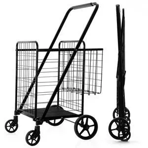 Folding Shopping Cart, Grocery Cart, 450 Lb Capacity, Utility Cart with 360° Rolling Swivel Wheels, Extra Large & Extra Basket