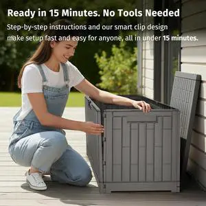 Outdoor Storage Box, 100 Gallon Waterproof PE Tarpaulin Deck Box with Galvanized Frame, All-Weather Protection & Portable, for Camping, Garden, Poolside, and Yard, Brown & Blue