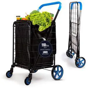 Large Folding Utility Shopping Cart with Removable Liner  Heavy Duty, 360° Swivel Wheels, 110 lb Capacity, Portable for Groceries, Laundry, Luggage, and More (Blue)