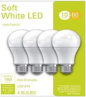 GE Lighting 32586 LED A19 General Purpose, 60-Watt-Replacement, Medium Base Light Bulb, 4-Pack, Soft White