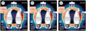 (6 bulbs) GE 34732 LED Chandelier Bulb, 300 Lumen, 4 watt LED Light Bulbs, Soft White, Dimmable, bent tip