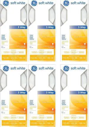 (6 bulbs) GE 41459 PS25D 3 Way Mogul Base Bulbs 100/200/300 Watt PS25 Soft White
