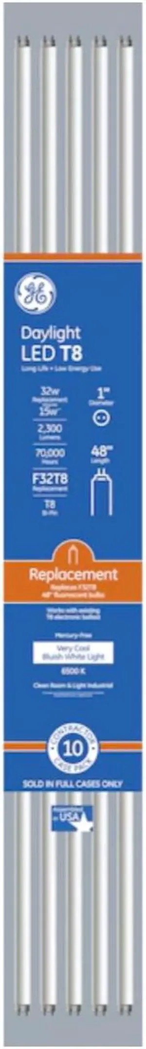 (case of 20) GE LED Tube, Double Ended 48 inch T8, 15 watt, 2200 lumen, 5000K Cool White, Type B Ballast Bypass, 120-347V